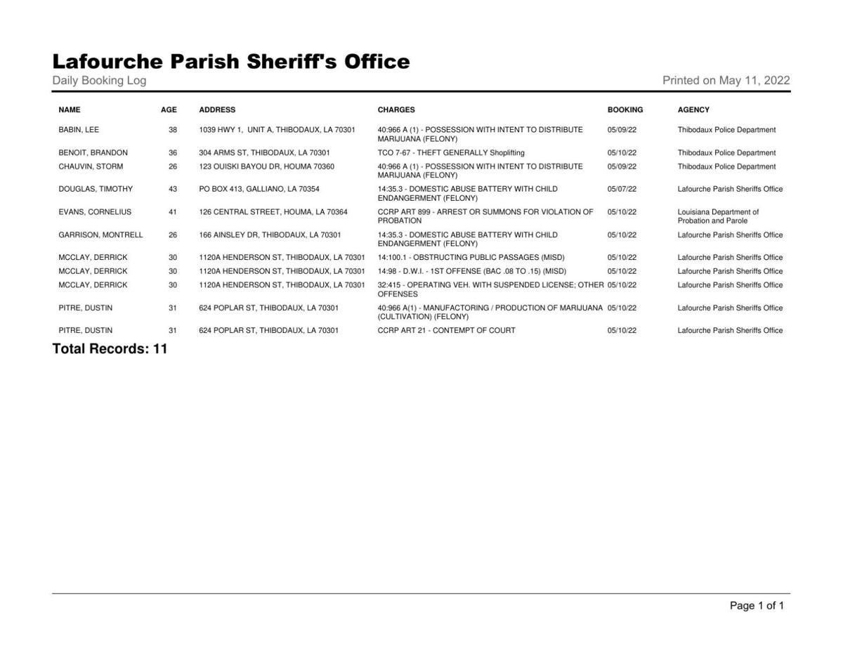 Lafourche Booking Log May 10 2022 News Lafourchegazette Com